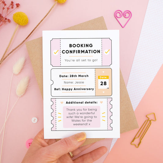 Personalised Anniversary Booking Confirmation Gift Card