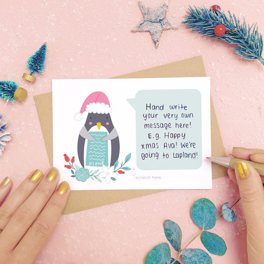 Personalised Penguin Christmas Gift Scratch and Reveal Card
