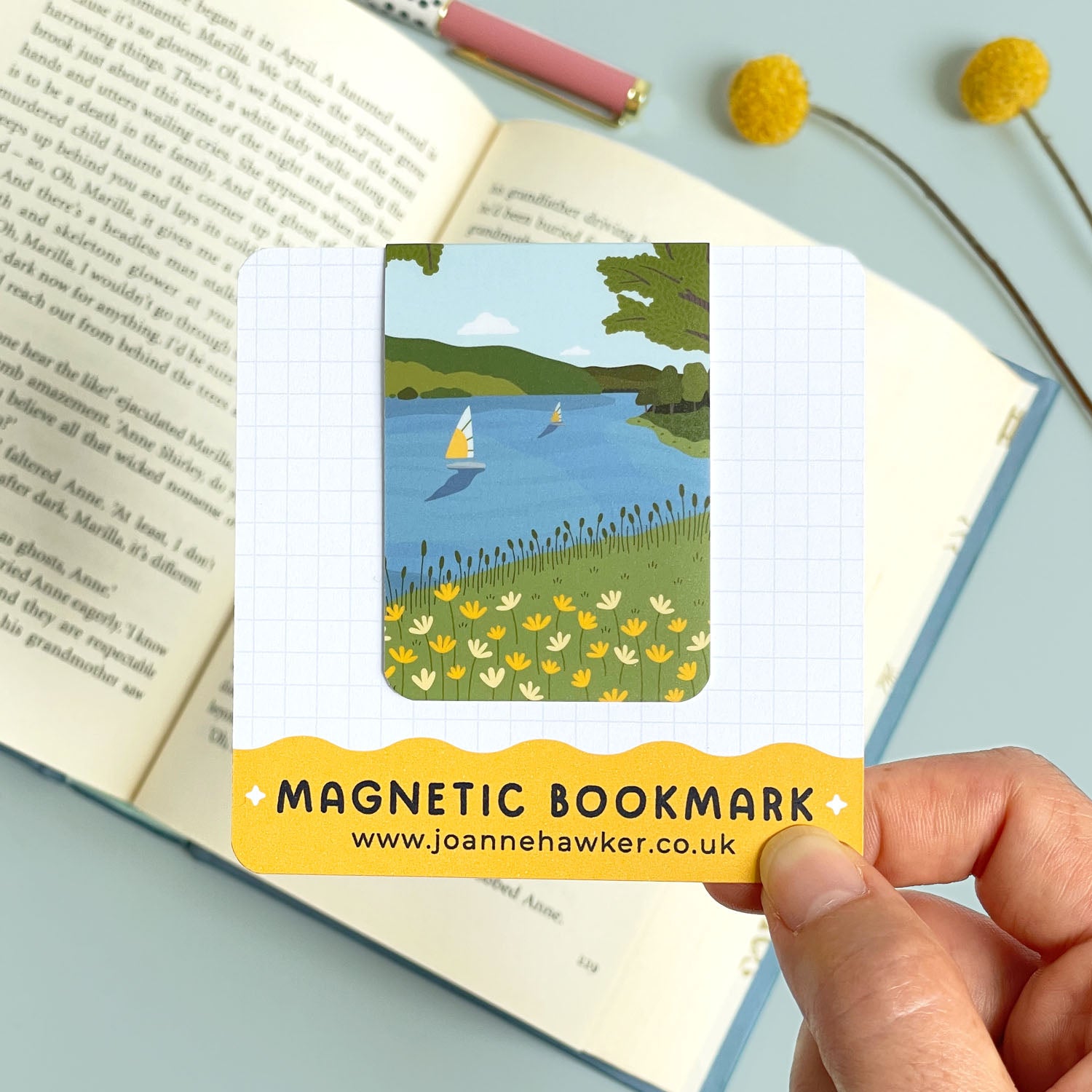 This magnetic bookmark features a view of Wimbleball Lake with some sail boats heading towards the dam. This bookmark is also a part of the Exmoor National Park collection.