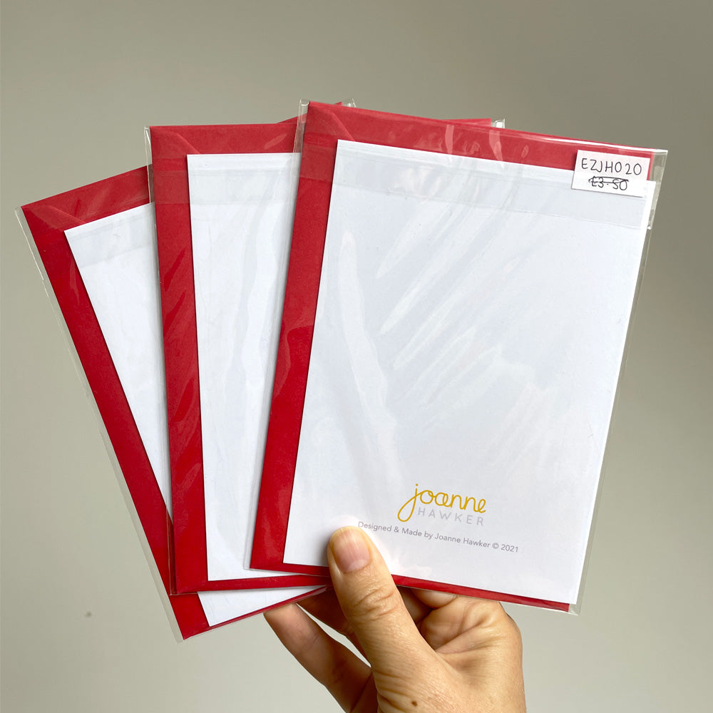 These cards are left over stock from one of my stockists from last year. Unfortunately the Santa ones were not looked after or properly packed away and so the envelopes have crushed corners however the card itself is fine. Please see photos for info. There are also old price labels on the outer packaging but do not affect the product.