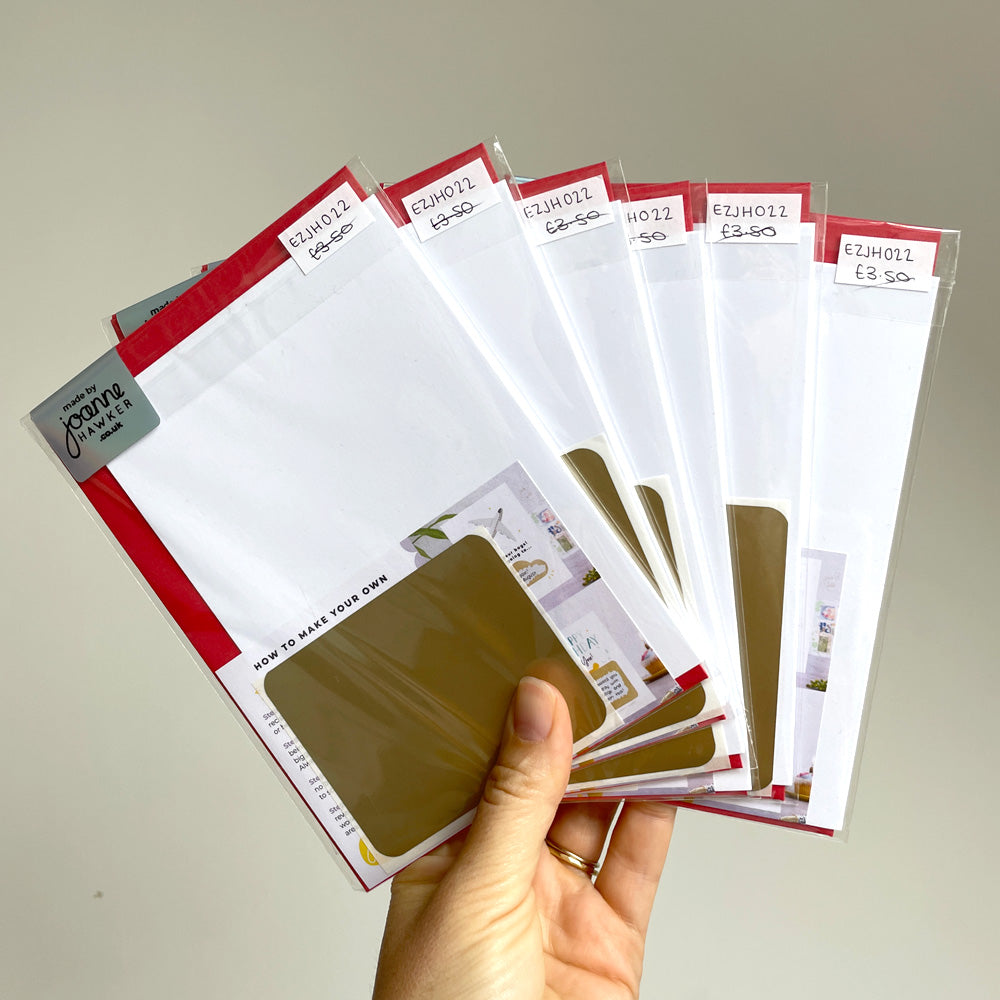 These 'make your own' style scratch cards are left over stock from one of my stockists from last year. There are stickers on the front and back of the packaging but they don't affect use.